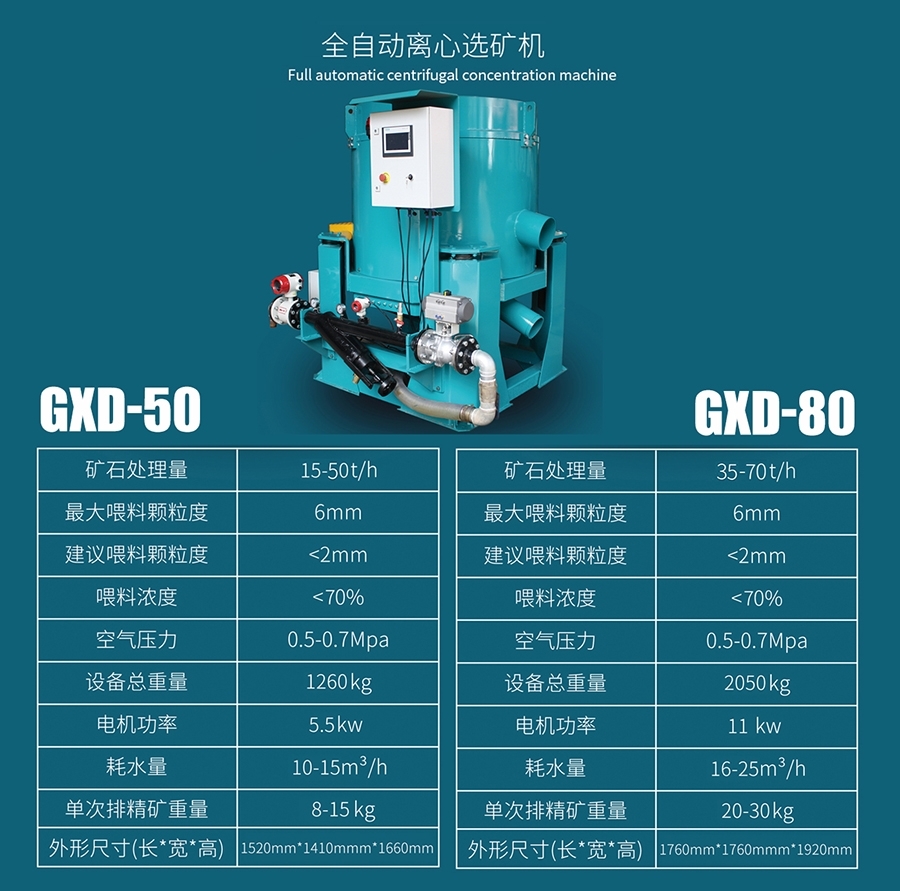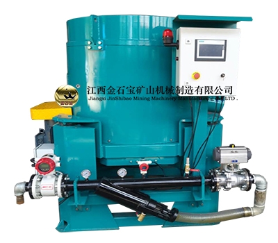 黄金分选机也称水套式离心机是专为金,银,锡,铅等贵金属设计的新型重选设备。该机主要是利用矿物的密度不同,在高速离心旋转的同时,施加反冲压力水,来达到分选矿物的目的。经实验证明,对金矿尤其显著。富集比可达1000倍。可以替代固定溜槽、螺旋溜槽、跳汰机等重选设备在流程中的作用。并有效的解决了传统溜槽微细金跑尾的问题。