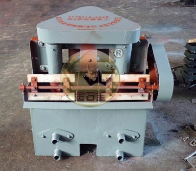 (1)、槽体部分,以钢板焊接制造的槽1,其中利用叶轮搅拌同时对矿浆进行冲气;为了调正槽内浆液面及被刮出泡沫层的厚度,利用两槽壁板制成中间槽15,其中安装矿浆液面调节器5,在槽内罩盖14上面安装孔板17,用来防止矿浆的混乱运动对泡沫区的影响,同时也可以防止脉石被机械带到精矿中去。并且在槽体部置有衬盆6,防止磨损槽底,衬盆可以更换,槽底外布置了有排矿口8,清洗时放水之用。矿浆流经壁板上的溢流口流进中间槽15和尾槽3,中间槽的下部与槽壁下部罩盖14的导管进入下一个槽中,这样可以继续流经,浮选机的槽数全部,从给矿槽3流入,由尾矿1的排矿口8排出,槽体下部的前后置有进矿口16,便于改变工艺流程。